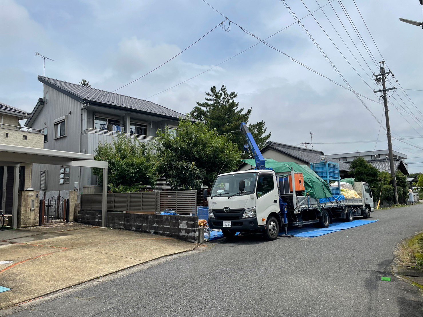 沈下修正班です 現在、岐阜羽島市内の戸建の建物の傾斜修正を行っております。 L型擁壁の盛土の締め固めが甘く、地盤沈下し、建物が傾斜したお宅です。 地盤強化を行いながら建物を水平に戻しています。 弊社のホームページを見て依頼してくれたお客様です。 -2023.6.26-