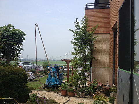 ハイブリッド工法は地盤改良と家屋傾き修正を一体化した液状化に強い地盤沈下修正対策です。< 日本全国対応 >